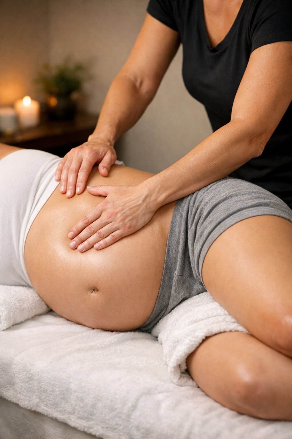 This prenatal massage is a pregnancy-safe therapeutic treatment designed to support comfort, circulation, and relaxation throughout each stage of pregnancy.