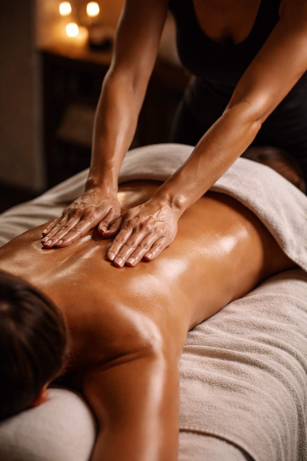 The session incorporates a sequence of therapeutic-grade essential oils applied using light, rhythmic techniques along the spine and feet. These techniques encourage the body to settle, promote relaxation within the muscles and connective tissues, and support the body’s natural restorative processes. The experience is gentle, grounding, and sensory-focused.